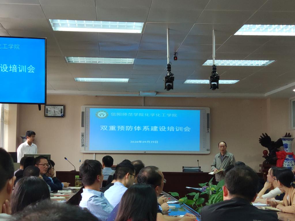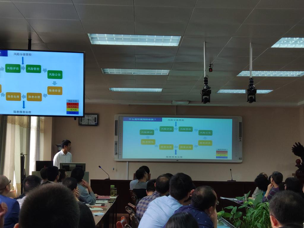为了全面落实beat365官网安全风险辨识管控与隐患排查治理双重预防体系计划内容的实施,beat365正版唯一官方网站于9月29日下午特邀技术合作单位河南省新伯乐教育科技有限公司专业讲师在化学楼407学术报告厅召开了“beat365正版唯一官方网站双重预防体系建设培训会”。会议由副院长归风铁主持。