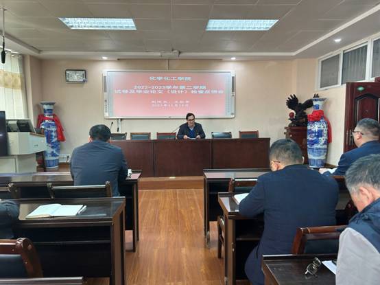 王红军副院长根据学校教学督导专家对2022-2023第二学期试卷及毕业论文(设计)检查的结果,就教学大纲、试卷、达成情况报告中存在的问题一一进行了反馈,并提出了整改建议。王红军指出:试卷、毕业论文(设计)检查工作的目的是找问题、明方向,并为今后不再出现类似问题积极探索有效的改进措施。