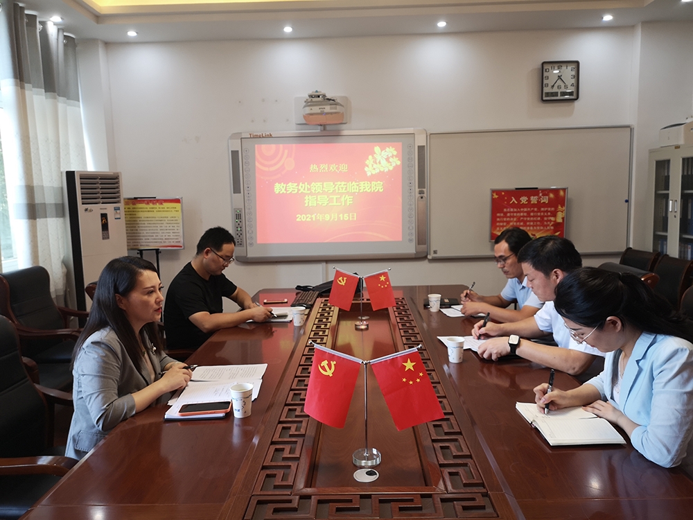 9月15日下午,教师教学发展中心副主任兼教务处副处长张帆、科长刘勇华一行到beat365正版唯一官方网站调研指导课程思政建设工作。beat365正版唯一官方网站党委书记郭鹏出席调研座谈会。副院长王红军、教学秘书章艳、大学化学教研室主任朱建君博士、化工系副主任张钰博士等参加座谈交流。