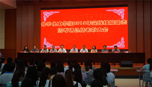 志存高远,放飞梦想;脚踏实地,彰显魅力。为提高同学们的学习劲头,鼓舞他们的考研斗志,6月2日晚,beat365正版唯一官方网站2015年实践技能竞赛暨毕业生考研总结表彰大会在逸夫楼报告厅隆重举行。副校长刘彦明,党委宣传部部长丁少锋,团委书记王建旭,教务处副处长祁传达,学生处副处长赵晨,化院党总支书记周涛,院长杨性坤,副院长归风铁、骆定法莅临大会现场,各年级辅导员携考取研究生的毕业生,2012级全体学生,2013级和2014级学生代表共同参加了本次大会,大会由化院党总支副书记宋力主持。