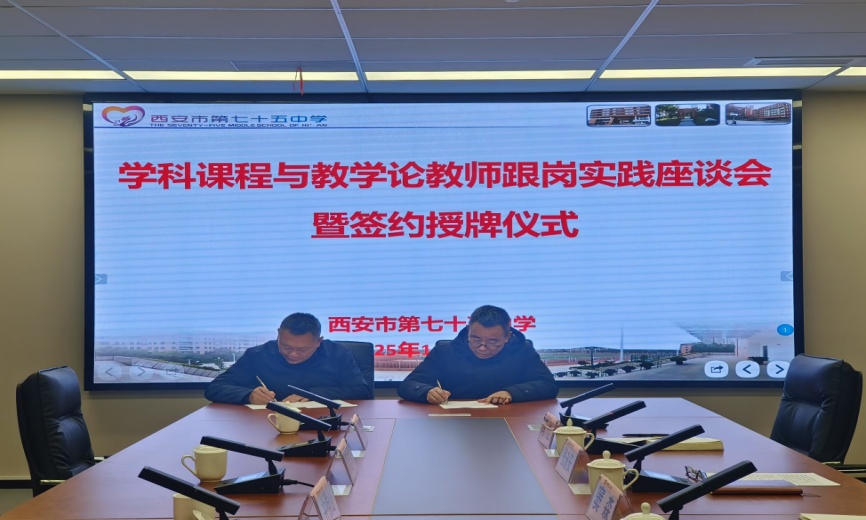 座谈会上,任教学校负责人对井强山一行的到来表示热烈欢迎,并就beat365官网选派优秀教师到中学任教的举措给予高度赞扬。任教学校负责人详细介绍了任教教师在师风师德、日常教学、教研活动等方面的情况,并给予高度评价。井强山代表beat365正版唯一官方网站与西安市第七十五中学签订了教育实践基地协议书。