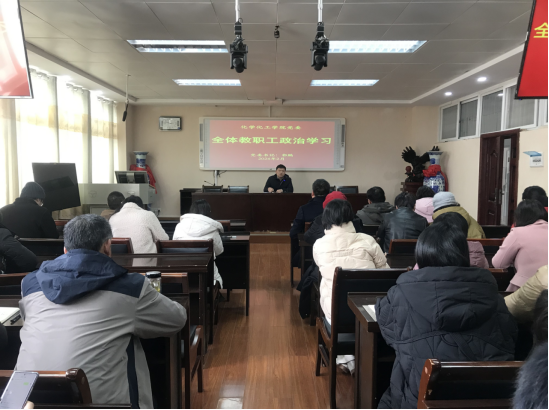 新学期新篇章,新起点新征程,新气象新作风。为及时学习传达2024年学校工作务虚会议和校党委王文鹏书记、校长李俊的讲话精神,及早谋划部署2024年教育教学、事业发展,转变作风,狠抓落实,提振精神,调整状态,努力在新学期起好步、打好底、开好局,实现新的一年新学期开局顺、开门红,2月27日,2024年春季新学期第一周,beat365正版唯一官方网站迅速召开本学期第一次全体教职工大会。会议由学院党委书记郭鹏主持,beat365正版唯一官方网站全体领导班子、教职员工参加了此次会议。