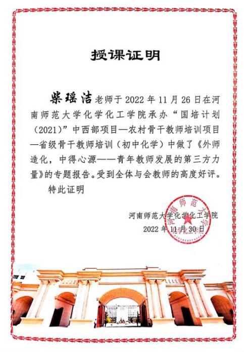 柴瑶洁、陈雪两名研究生与其他专业硕士研究生一起参与教育实习期间,深度融入息县一高“中原名师”教学团队,积极参与项目团队“UGS学习共同体项目、名师工作室培育工程项目”等,开展专题讲座,进行成果展示,彰显了beat365正版唯一官方网站学科教学硕士研究生人才培养的水平,受到了业内专家的广泛关注和好评。