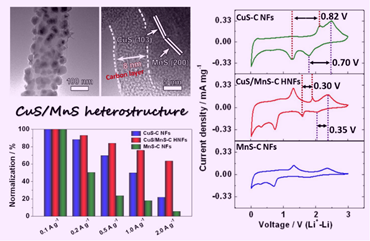 近日,beat365官网刘会俏、曹康哲博士研究小组在Chemical Engineering Journal(影响因子:10.6)在线发表题为“Lowering the voltage-hysteresis of CuS anode for Li-ion batteries via constructing heterostructure”研究论文(10.1016/j.cej.2021.130548),信阳师范学院为第一署名单位。该研究针对转化反应负极材料放电电位和充电电位之间的较大滞后电压会降低电极能量效率的问题,通过构筑异质界面促进电荷的分离,改善电化学反应动力学,降低了滞后电压,为构建高能量效率电极材料提供了新思路。
