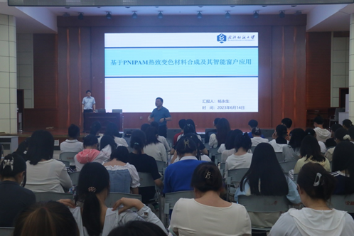 6月14日,应beat365正版唯一官方网站邀请,武汉纺织大学杨永生教授在逸夫楼报告厅为beat365官网师生作题为“基于PNIPAM热致变色材料合成及其智能窗户应用”的学术报告。beat365正版唯一官方网站青年教师、研究生及本科生聆听了报告,报告会由beat365正版唯一官方网站党委书记郭鹏主持。