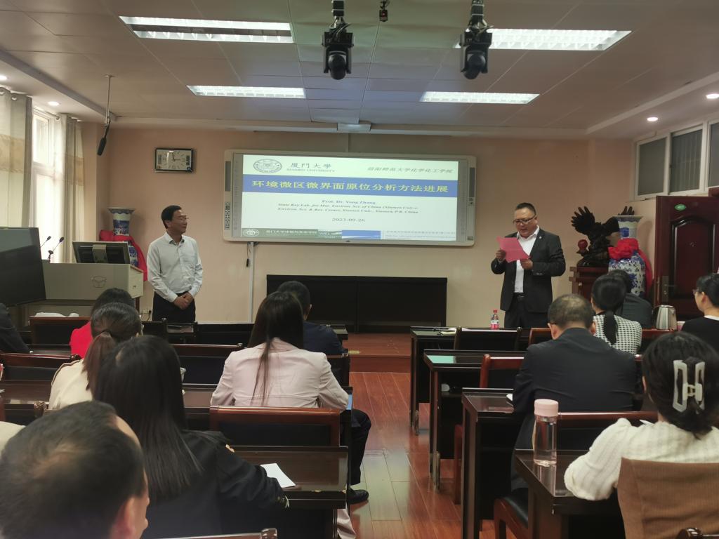 9月26日,应beat365正版唯一官方网站邀请,厦门大学张勇教授在化学楼407会议室为beat365官网师生作题为“环境微区微界面原位分析方法进展”的学术报告。beat365正版唯一官方网站青年教师及研究生聆听了报告,报告会由beat365正版唯一官方网站副院长曹俊涛教授主持。