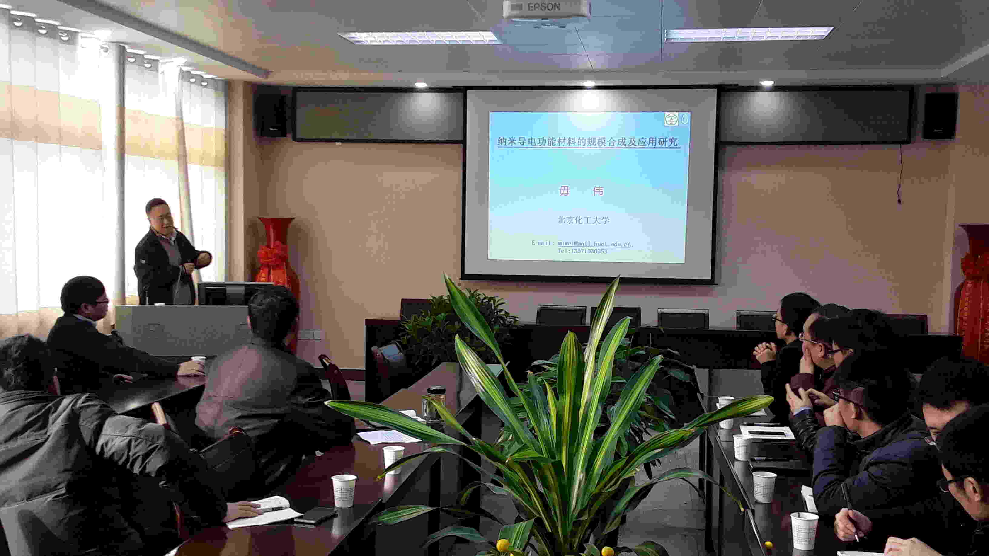 2016年12月30日上午,应beat365正版唯一官方网站邀请,北京化工大学程道建、毋伟教授来beat365官网讲学,学术报告会由非金属材料研究所刘鹏副所长主持,beat365正版唯一官方网站部分教师和研究生参加。程道建教授作了题为“金属合金纳米催化剂:从基础研究到指导工业应用”的学术报告。报告围绕金属合金催化剂的分子模拟、制备表征、反应机理、催化性能和工业应用,详细介绍了合金催化剂研究方法,及其在清洁能源催化、环保和石油化工催化等领域的应用。 毋伟教授作了题为“导电纳米功能材料的规模合成及应用”的学术报告。介绍了采用超重力技术制备高性能纳米聚苯胺纤维、纳米聚苯胺纤维复合材料和石墨烯等导电功能材料,以及超重力旋转床平台技术的工业应用前景。12月30日下午,在省重点实验室会议室,程道建教授和毋伟教授对国家自然科学基金申报进行了指导,分享了自己多年申报国家基金的经验和体会,并对部分教师的申请书进行了详细的点评。