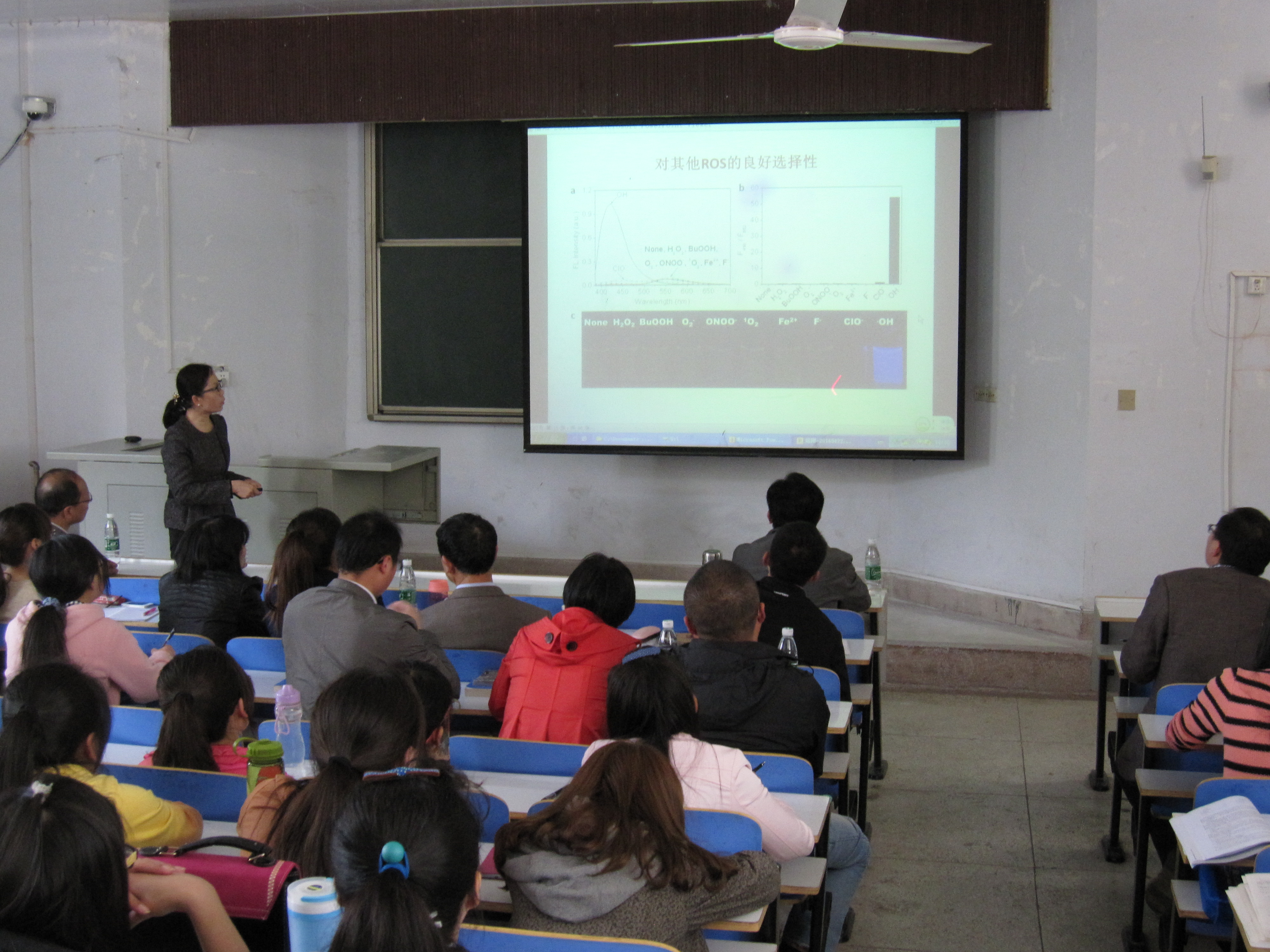易涛教授首先介绍了响应型分子功能性材料的研究背景,从动力学驱动、热力学可逆开始,讲述了分子敏感材料及对外界刺激的响应能力,重点结合自己的科学研究,从比度荧光探针检测ROS和DNA、荧光开关材料用于活细胞成像和超分子凝胶材料用于可视化检测三个方面,讲授了响应型探针材料及生物成像,易教授精彩的报告赢得了师生的阵阵掌声。会后,易涛教授与beat365正版唯一官方网站师生就报告相关内容进行了深入交流。