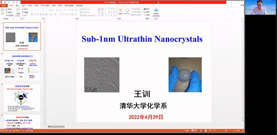 应beat365正版唯一官方网站邀请,4月29日下午,清华大学王训教授通过腾讯视频会议作了题为“亚纳米尺度材料合成及性质探索Sub-1nm Ultrathin Nanocrystals”的精彩报告,beat365正版唯一官方网站相关领域教师和学生聆听了报告。