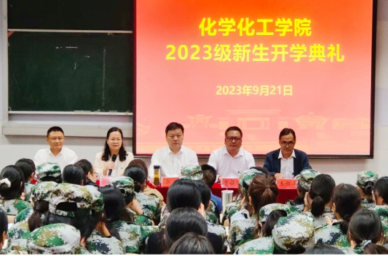 2021级化学四班唐亚旭、2023级化学二班陈鑫雨分别代表老生和新生发言。赖贞贞博士作为教师代表进行发言。
