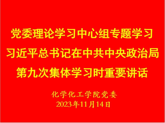 11月14日,化学化工学院党委理论学习中心组在化学楼三楼313会议室召开集体学习会,专题学习习近平总书记在中共中央政治局第九次集体学习时的重要讲话精神。党委书记郭鹏主持学习,理论学习中心组成员参加。