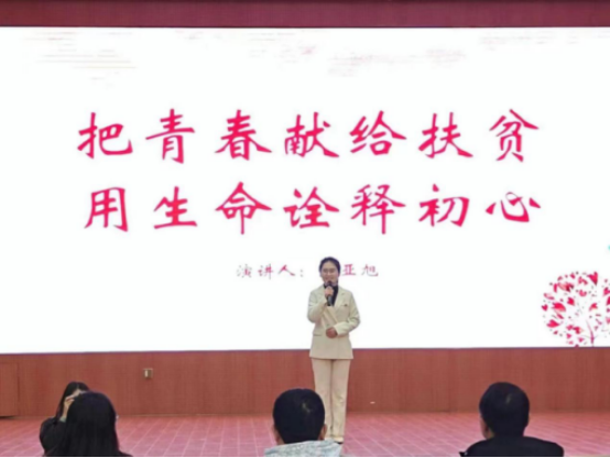 决赛现场,唐亚旭以《把青春献给扶贫,用生命诠释初心》为主题,讲述了时代楷模黄文秀扎根百色市百坭村倾情投入、奉献自我的感人故事,诠释了共产党人的初心使命,谱写了新时代的青春之歌,并号召当代大学生积极践行社会主义核心价值观,将其落细落小落实,她的演讲引起在场师生的共鸣,赢得了评委和观众的一致好评。
