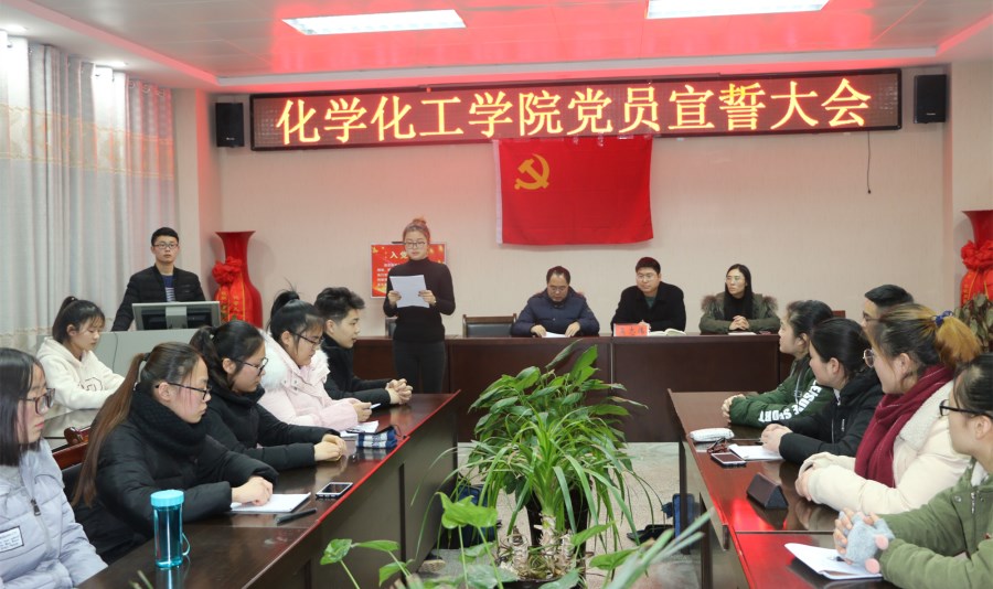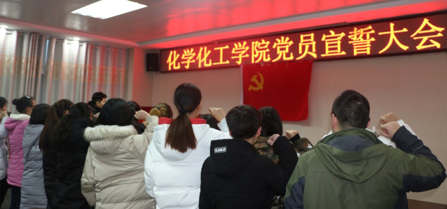 1月4日下午,beat365正版唯一官方网站新发展的20名学生党员以及2名教师党员在化学实验楼407会议室进行隆重的入党宣誓活动。beat365正版唯一官方网站党委副书记吴志伟,党委秘书冷向宇,学生支部书记王丽霞参加了此次入党宣誓仪式。仪式由冷向宇主持。