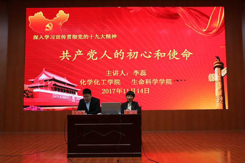 李蕊从中国共产党人为“中国人民谋幸福,为中华民族谋复兴”的初心和使命谈起,分别从过去、现在、未来三个不同的历史方位深入分析了十九大的深刻意义。报告首先带领大家回顾了中国共产党成立以来艰辛探索的革命史,接着,立足中国特色社会主义新时代的现实,为大家解读了新时代的新内涵和的新矛盾,她强调面向未来,实现共产党人的使命要坚持新思想,推进“四个伟大”,完成“两个阶段”目标,坚持十四个基本方略。
