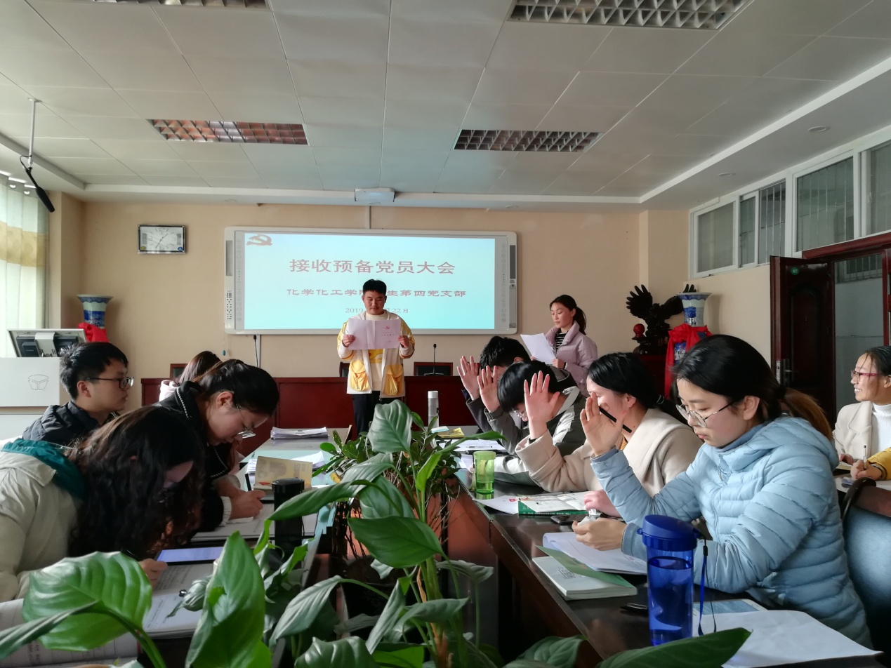 11月22日中午,beat365正版唯一官方网站学生第四党支部在实验楼407会议室召开预备党员接收支部大会。第四党支部王露洁同志主持本次会议。