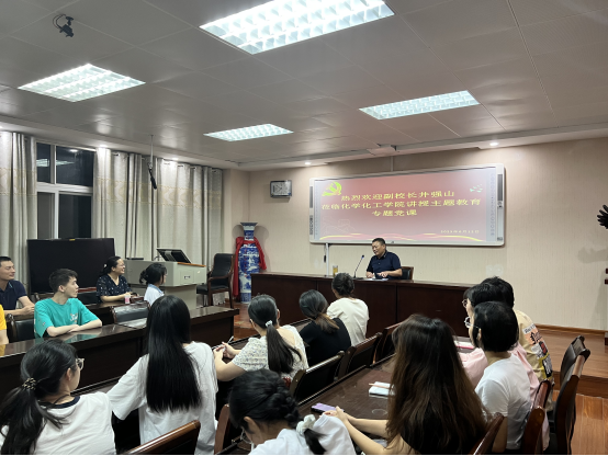 6月12日晚,副校长井强山以《学习贯彻新党章,凝聚团结奋斗动力,忠诚履行新使命》为题讲授主题教育专题党课,beat365正版唯一官方网站师生代表参加。