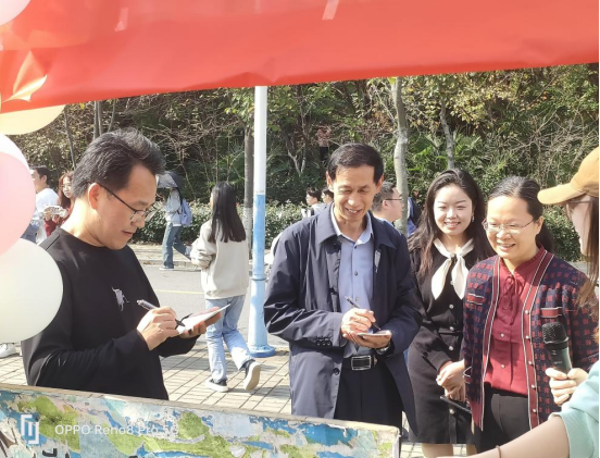 趣味化学知识竞赛、珠行万里、不倒森林和音乐展示台等游戏欢乐进行中,校党委副书记岳宗德、大学生心理健康教育中心主任李贵杰莅临现场为化院学子亲笔寄语:“快乐大学”、“悦纳自我”。