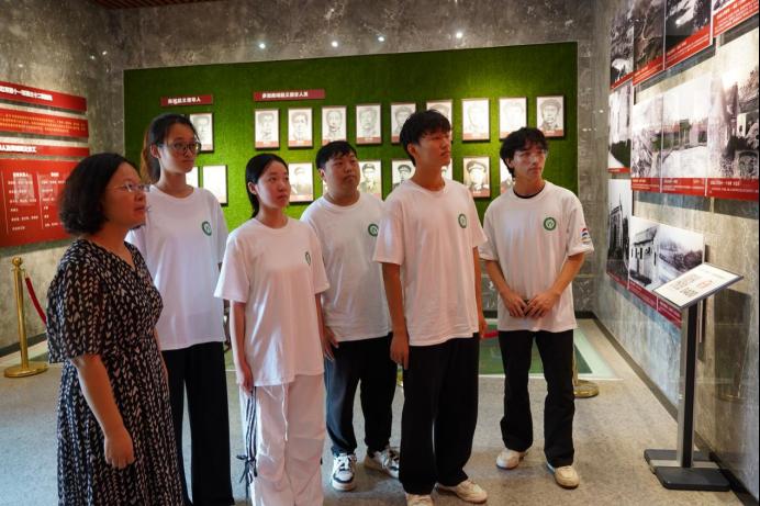 实践团首站抵达庄严肃穆的商城县革命烈士纪念馆。在讲解员带领下,同学们凝视着馆内珍贵的文物史料与历史照片,重温了革命先辈们为民族独立与人民解放事业浴血奋战的峥嵘岁月。面对英烈名录墙,师生肃立默哀,向长眠于此的英雄们致以崇高敬意。在鲜红的党旗与团旗下,青年学子重温入团誓词,誓言铿锵。红色基因在无声浸润中凝聚为奋进力量,激励着学子们坚定理想信念,勇担时代重任。