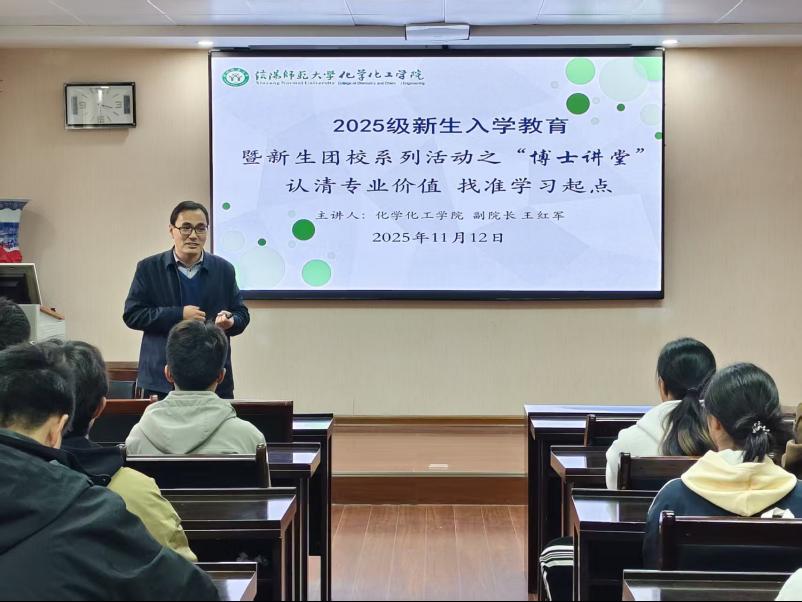 11月12日,beat365正版唯一官方网站在化学楼407开展2025级新生入学教育暨新生团校系列活动之“博士讲堂”,beat365正版唯一官方网站副院长王红军主讲,学院团委书记赵方方主持,2025级化学工程与工艺专业新生参与。