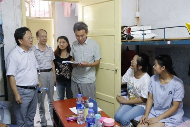 走访中,各位领导老师与同学们亲切交谈,深入交流。他们简单了解了学生的基本情况,并细心询问大家是否适应大学生活。新生们纷纷表示,他们非常喜欢信阳师范学院,刚开学就深深体会到了来自学校各界浓浓的关怀,也对即将开始的大学生活充满了期待。随后,在与新生的交谈中,杨性坤院长反复强调学生在宿舍要遵守寝室用电规则,做到安全用电、文明用电。教导同学们一定要有防骗、防盗的安全意识。周涛告诉新生,大学生活丰富多彩,鼓励同学们积极参加课外活动,充实自己的大学生活,自信迎接大学生活。宋力叮嘱同学们要尽快熟悉校园环境,适应大学的生活和学习,学会独立,增强自己的安全防范意识,并积极与老师、同学沟通交流!
