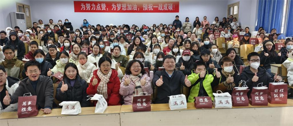 曲剧为考研学子加油鼓劲,她希望同学们要坚定目标信念,注重复习策略,注意身心健康,积极调整心态并表示会及时解决同学们在备考过程中的困难、困惑,为考研学子全力做好服务保障工作。活动中,学院领导老师为同学们送上亲笔寄语、暖宝贴、面包等物品,希望所有考研的同学都能心想事成,金榜题名。