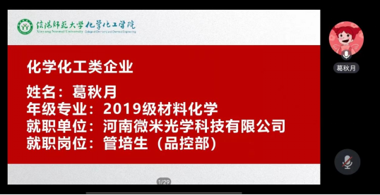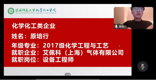 4月17日,beat365正版唯一官方网站开展毕业生“就业育人”系列活动之企业求职经验分享会,此次会议邀请到了2017级化学工程与工艺专业原培行,现就职于艾佩科(上海)气体有限公司任设备工程师;2019级材料化学专业葛秋月,曾就职于河南微米光学科技有限公司为品控部管培生。学院党委副书记曲剧、就业秘书严赫、2024届毕业生及其他年级学生参会,会议由严赫主持。