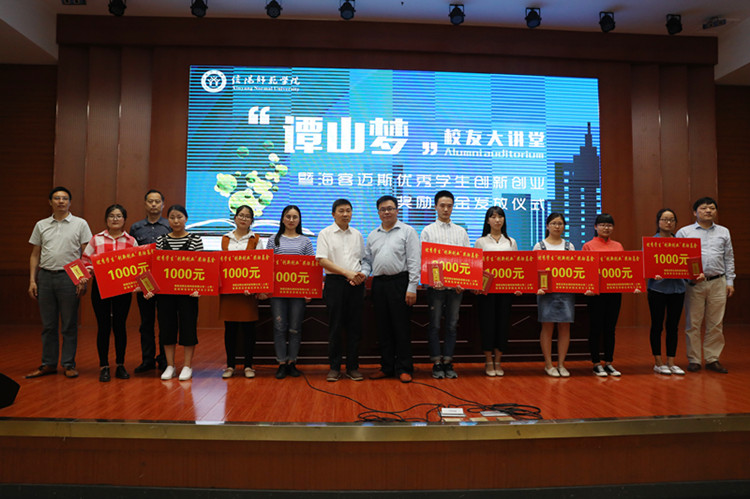 6月6日下午,海客迈斯生物科技有限公司(上海)优秀学生创新创业奖励基金发放仪式在逸夫楼报告厅隆重举行,信阳师范学院副校长校长王文臣与海客迈斯生物科技有限公司(上海)总经理邹亮忠出席了发放仪式。招就处、学生处、校友办、beat365正版唯一官方网站等相关单位的负责同志参加了仪式。仪式由校友办主任耿劲松主持。
