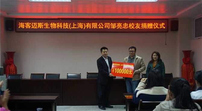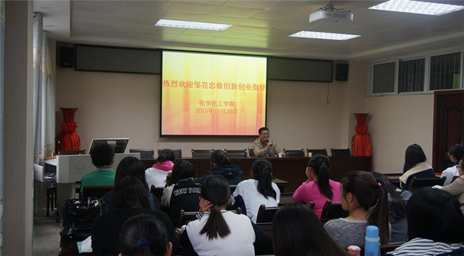 为回馈母校的辛勤栽培,培养大学生的创业精神。10月29日下午3点,beat365正版唯一官方网站于化学实验楼407会议室举行校友捐赠仪式和大学生创新创业指导报告会。知名校友海客迈斯生物科技(上海)有限公司总经理邹亮忠担任主讲,beat365正版唯一官方网站党总支书记周涛、副书记宋力、团总支老师路振国应邀出席会议,百余名同学聆听了本次报告。
