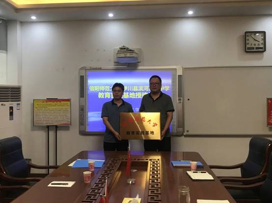 随后,双方就建立教育实践基地合作等事宜进行协商,并举行了隆重的beat365正版唯一官方网站-伊川滨河高级中学教育实践基地的签约仪式和授牌仪式。