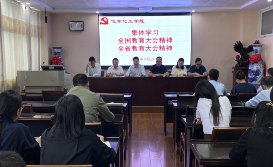 为传达学习全国、全省教育大会精神,推动学院高质量发展,9月24日下午,我院于化学楼407会议室,组织全体教师集体学习全国教育大会精神、全省教育大会精神,会议由学院党委书记吴志伟主持,学院党委中心组成员及全体教师参加。