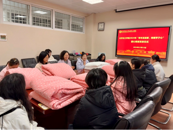 12月13日,beat365官网在化学楼210会议室举行爱心棉被发放仪式。beat365官网党委副书记曲剧,辅导员翟成辉出席本次发放仪式。