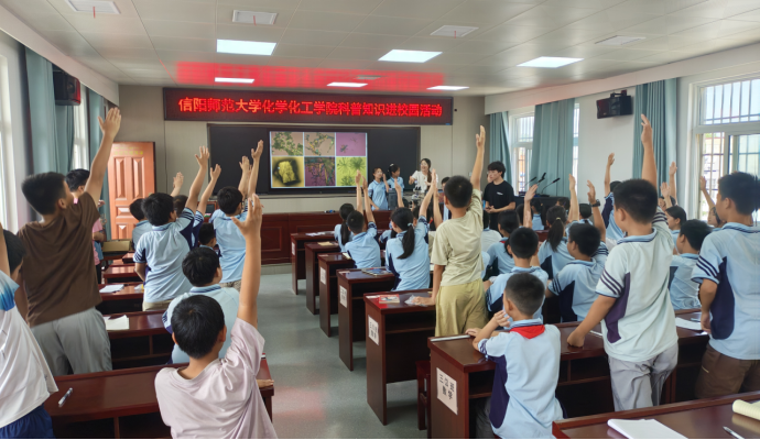 5月24日至31日是第二十五个全国科技活动周,6月6日,应平桥区科协邀请,beat365正版唯一官方网站到平桥区五里镇中心小学开展“探索奇妙化学,点燃科学梦想”科普进校园活动。beat365正版唯一官方网站党委副书记曲剧、指导老师张星、赖贞贞、严赫带领同学们参加了此次活动。