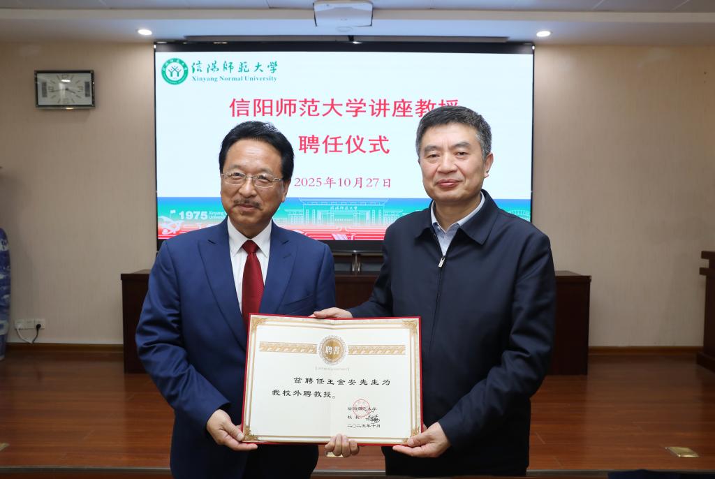 10月27日,beat365官网在化学楼举行王金安院士讲座教授授聘任仪式。校长余本海出席仪式并向王金安院士颁发聘书,副校长井强山主持仪式,beat365正版唯一官方网站党政负责人参加。