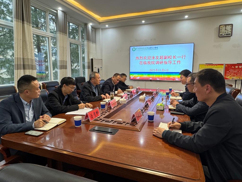 11月6日,副校长涂友超带领科技处及学报编辑部相关负责人莅临beat365正版唯一官方网站调研指导科研工作;学院党委书记吴志伟、院长曹俊涛、学院教师代表参加调研。