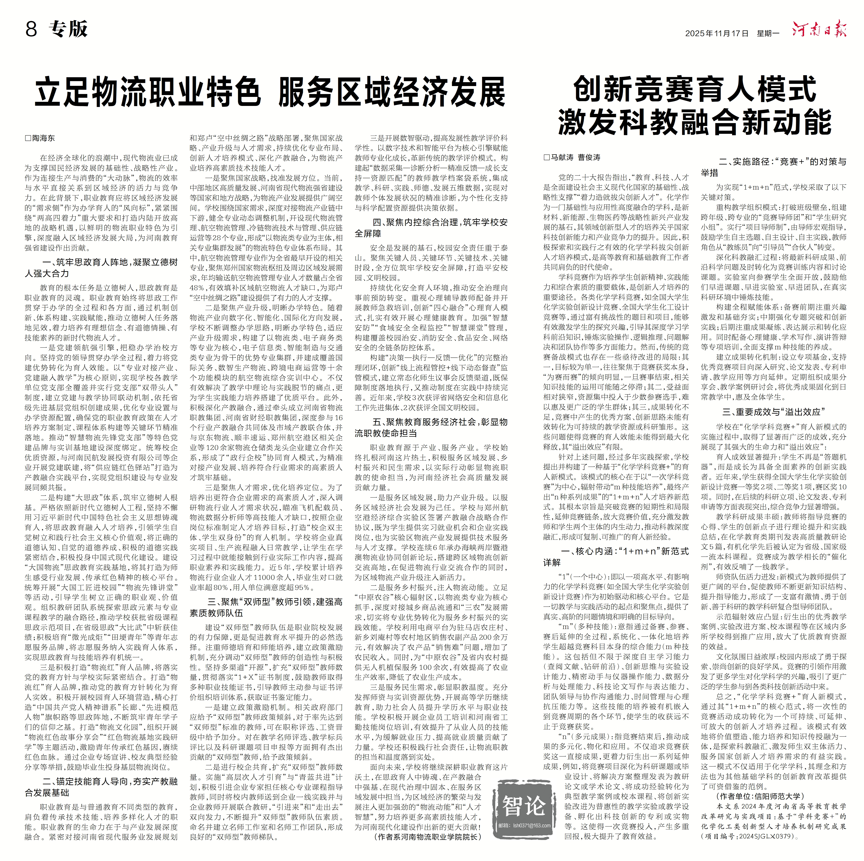 2025年11月17日,《河南日报》以《创新竞赛育人模式 激发科教融合新动能》为题,在第08版专题报道beat365官网马献涛博士、曹俊涛教授团队的最新教研成果(报道链接:https://dzb.henandaily.cn/html5/2025-11/17/content_17_1767213.htm?curr=),充分彰显beat365官网在基础学科创新人才培养领域的探索成效与示范价值。