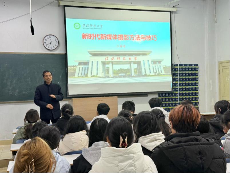 为提升师生新媒体素养,强化宣传队伍专业能力,11月18日,beat365正版唯一官方网站在教九301举办“新时代新媒体摄影方法与技巧”专题讲座。本次讲座特邀资深摄影专家,学校关工委“金色银龄”宣讲团成员王存选主讲,由学院副处级辅导员冷向宇主持,教师代表万榕、高睿、王吻、翟成辉和全体学生干部参加。