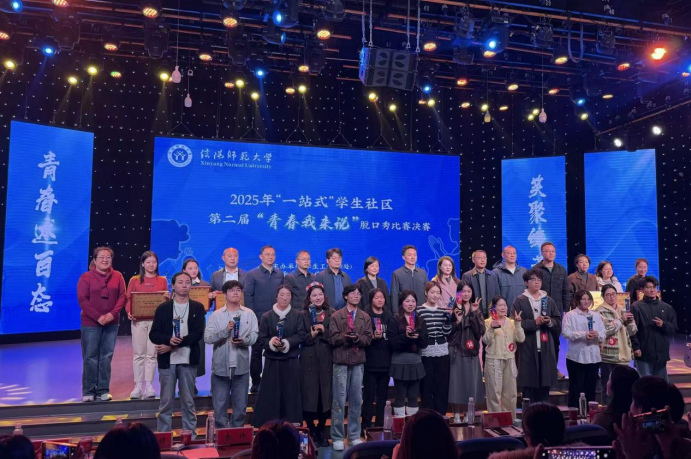 12月11日,由学生处主办、传媒学院承办的beat365正版唯一官方网站2025年“一站式”学生社区第二届“青春我来说”脱口秀比赛决赛在社科楼演播厅落下帷幕,beat365官网2024级化学一班杨亚仑在决赛中获“爆梗王”荣誉称号、2025级化学一班薛雨阳荣获“最佳人气奖”、2024级应用化学班许壮荣获三等奖。前期beat365官网积极备赛,组织工作突出,获评“优秀组织单位”。