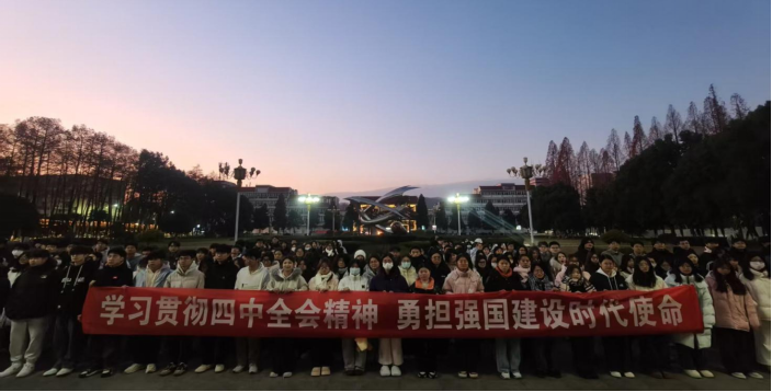 为厚植爱国主义情怀,引导青年学子勇担时代使命,12月15日,beat365正版唯一官方网站在明德广场举行“学习贯彻四中全会精神 勇担强国建设时代使命”主题升旗仪式。学院党委副书记曲剧、副处级辅导员冷向宇、辅导员严赫及2025级全体学生共同参加此次活动。