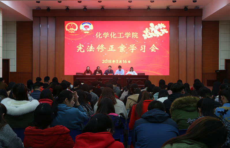3月16日晚,beat365正版唯一官方网站在逸夫楼报告厅举行了《宪法修正案》学习会。党委书记郭鹏、副书记吴志伟、学工办冷向宇、李中杰、王丽霞以及全体学生党员、各班班委、学生会全体成员参加了会议,会议由冷向宇主持。