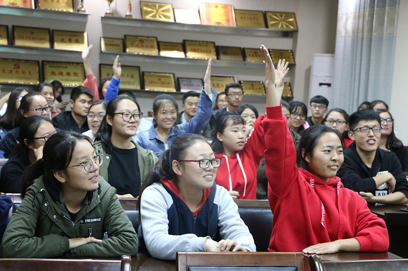 此次竞赛分为初赛和决赛两个阶段。比赛前期,学生会负责人编制了十九大工作报告和新党章的资料手册,并且根据资料提取了300余道竞答题目,各班利用课前半小时举行班级初赛,每班推选出十名表现优异的选手参加学院决赛。决赛设置了必答题、抢答题、附加题等环节,场上选手积极竞答,场下亲友团热情互动,现场气氛热烈。比赛最终产生一等奖一名,二等奖两名,三等奖两名。