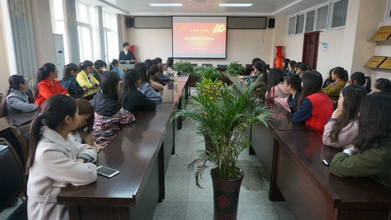 认真学习两会精神,共同构建和谐校园。为了深刻领会“两会”精神。3月10日下午,beat365正版唯一官方网站于化学实验楼407会议室召开两会精神学习研讨会。50余名同学参加了此次研讨会。辅导员王丽霞老师莅临现场指导学习。