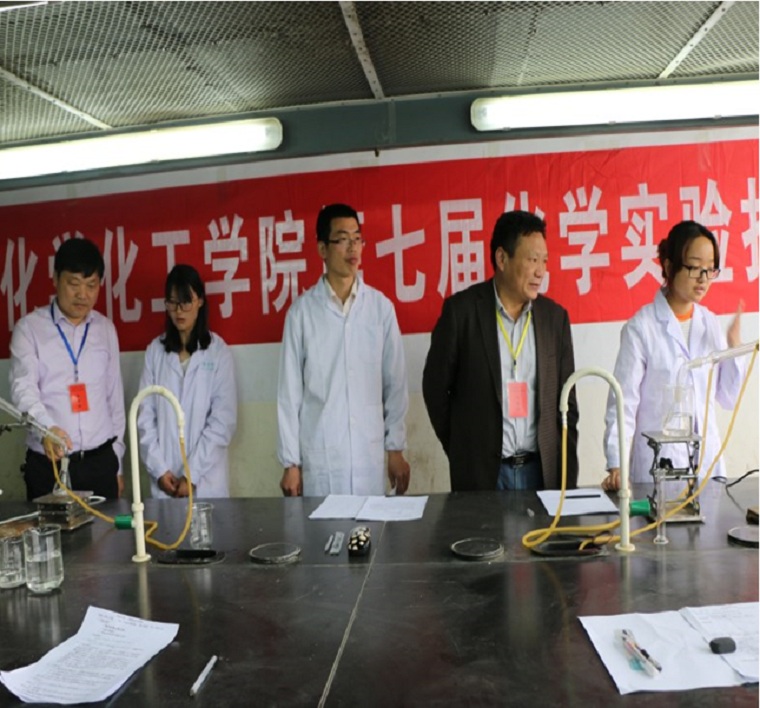5月6日上午八点,由beat365正版唯一官方网站举办的第七届化学实验技能竞赛在化学实验楼5楼和6楼实验室顺利进行。beat365官网党委书记郭鹏,院长井强山,副院长归风铁、骆定法,党委副书记吴志伟,非金属材料研究所所长刘鹏到场巡视。