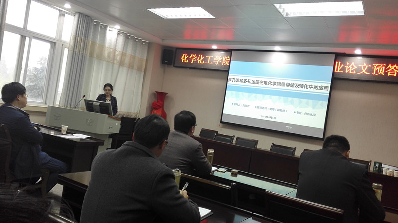 4月6日下午,beat365正版唯一官方网站2013级研究生硕士毕业预答辩会在化学楼报告厅举行,研究生导师刘德汞教授、井强山教授、黄克靖教授、甘甜副教授、曹新华副教授、王海波副教授和曹俊涛副教授担任预答辩评审专家,beat365正版唯一官方网站全体研究生参加了此次答辩会。