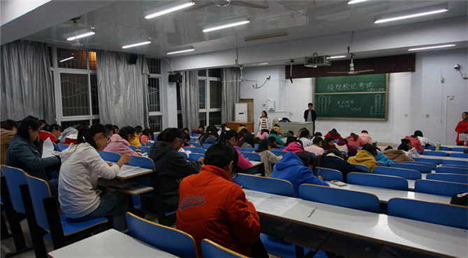 为使学生们增强纪律意识,加强校风文明建设。10月31日下午5点30分,beat365正版唯一官方网站在教四梯一、梯二组织开展2015级新生校规校纪考试。近150名2015级新生参加此次考试,化院学生会全程监考。