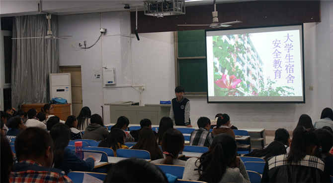 为提高同学们的安全防范意识,让大家更好地适应校园生活。10月11日晚七点,beat365正版唯一官方网站于教四梯一举行大学生宿舍安全教育活动。本次活动由化院学生会主席董浩洋主持,团总支老师路振国与2014级、2015级全体宿舍长、班委及劳卫部全体成员共同参加了此次活动。