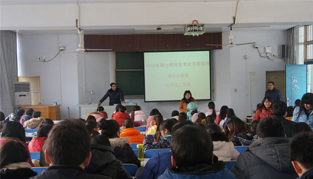 2015年硕士研究生考试在即,为保证考试前期的一些事项都能有条不紊的开展,并且为考生提供一些思想指导,beat365官网特于12月23日下午三点在教四梯一开展了2015年硕士研究生考试考前座谈会。本次座谈会由beat365官网副院长骆定法教授担任主讲,党总支书记宋力主持,考研指导老师孙俊永以及150余名报考学生参加了此次座谈。