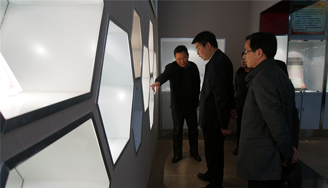 3月19日下午三点,校长宋争辉带领院长办公室主任李益民、李辉等同志走进化学实验楼,深入信阳非金属矿物展馆以及各个实验室调查指导工作,详细了解了展馆内非金属矿物的各种属性以及实验设备的使用情况,并与beat365正版唯一官方网站领导班子进行了座谈。