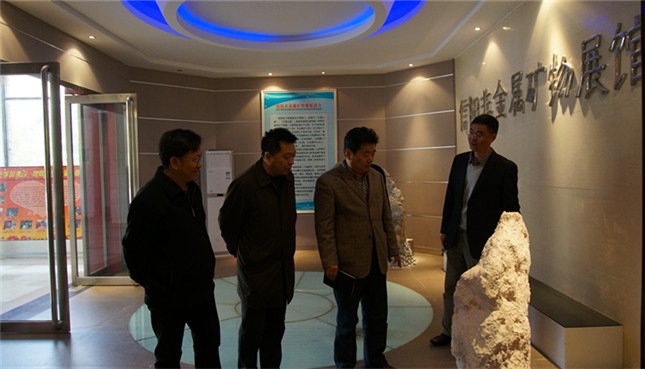 4月13日上午九点半,副校长齐城在院长办公室副主任王振海的陪同下走进化学实验楼,深入信阳非金属矿物展馆以及各个实验室调查指导工作,详细了解了展馆内非金属矿物的各种属性以及实验设备的使用情况,并与beat365正版唯一官方网站领导班子进行了座谈。