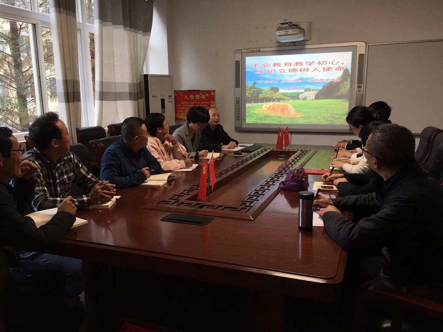 1010日,化工原理支部和实验教学中心支部联合在实验楼“党员之家”召开“不忘初心、牢记使命”主题教育活动。活动由党支部书记姜通武主持,两个支部的党员参加了本次活动。党委委员归风铁副院长参加会议,并作“不忘教育教学初心,牢记立德树人使命”的专题党课报告。