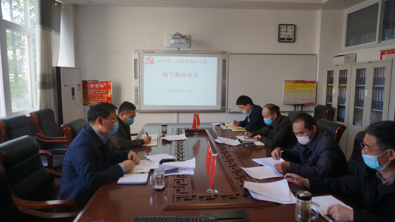 4月14日,beat365正版唯一官方网站分党委在“党员之家”进行理论学习中心组线下集体学习,中心组全体成员全程佩戴口罩认真参加学习。